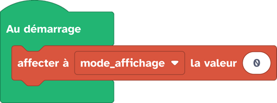 Au début du programme, il faut initialiser la variable à l'aide du bloc suivant, également présent dans la catégorie Variables :