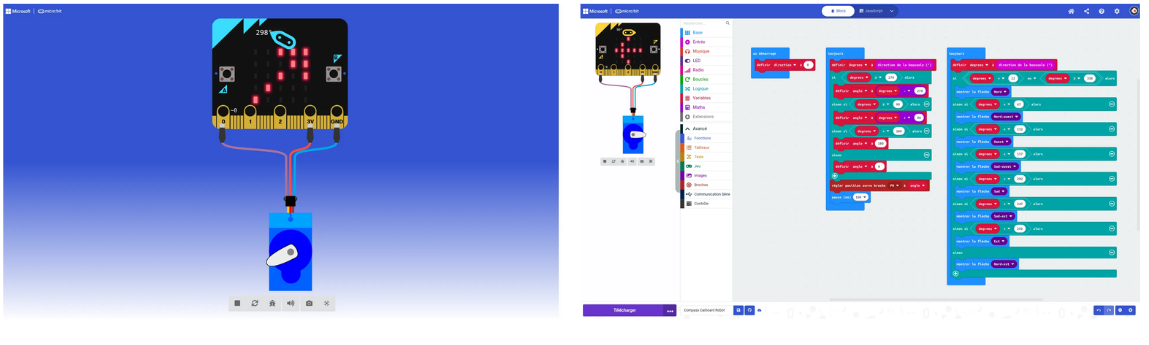 | Principe | La carte micro:bit affiche une flèche sur ses LEDs qui pointe vers le Nord | Une flèche en carton fixée sur un servomoteur tourne physiquement pour pointer vers le Nord |