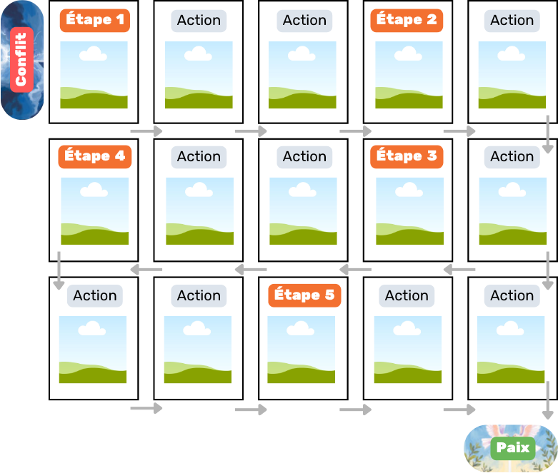 Exemple d'organisation de tapis complet (du Conflit à la Paix)