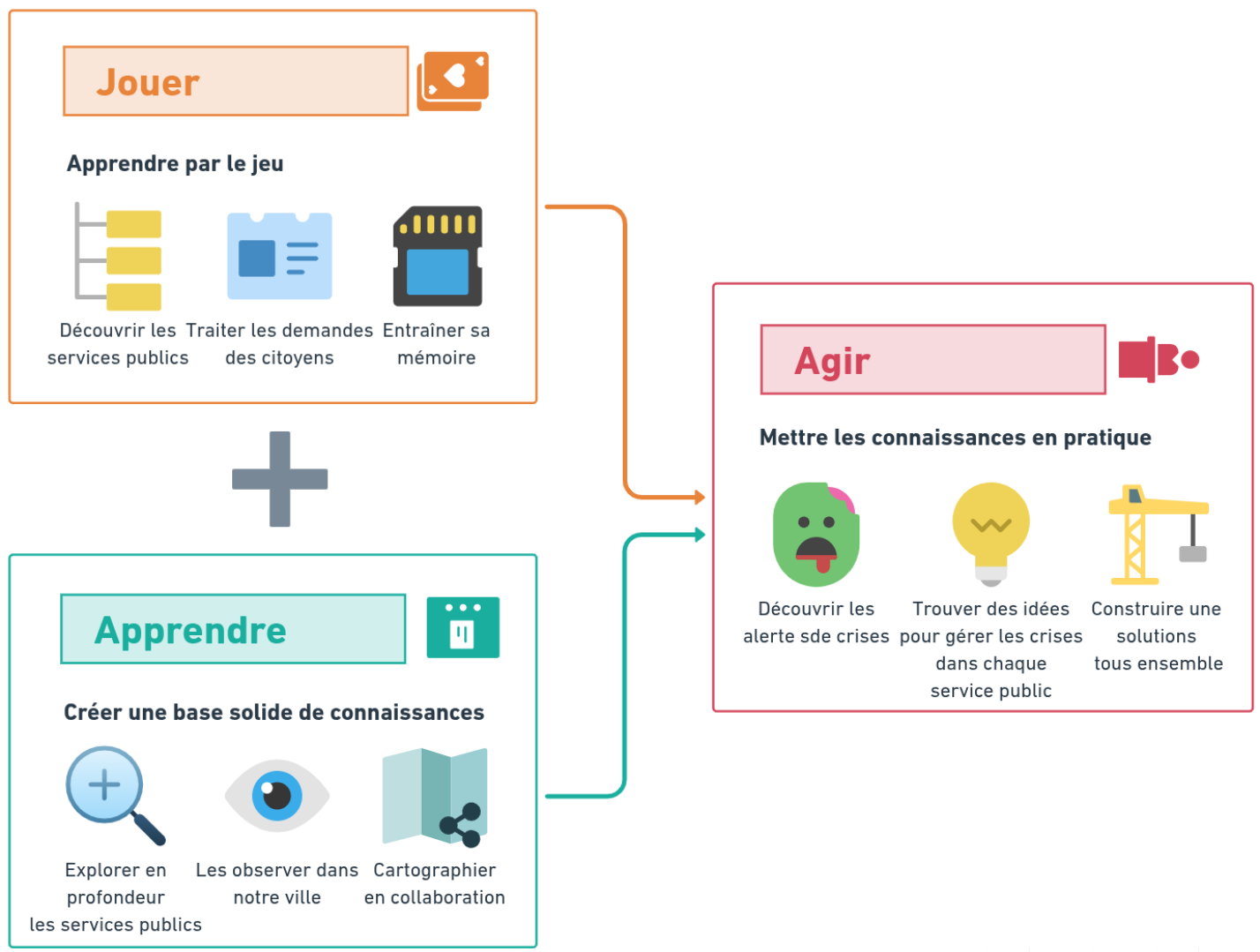 Le jeu permet d'explorer trois notions essentielles : l'administration publique, l'engagement civique et les services communautaires. Les élèves gèrent des sollicitations diverses, simulant le travail des services municipaux dans la mise en œuvre des politiques locales. En collaborant et en résolvant des problèmes à plusieurs, ils expérimentent les mécanismes de la prise de décision collective. À travers la nature des demandes, ils prennent conscience des services assurés par la collectivité pour le bien-être général.