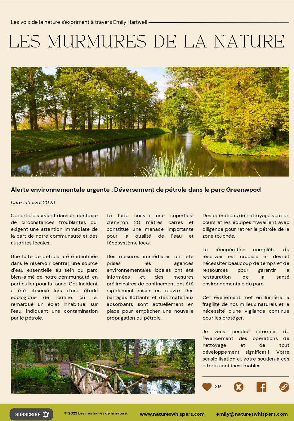 Alerte environnementale urgente : déversement de pétrole dans le parc Greenwood