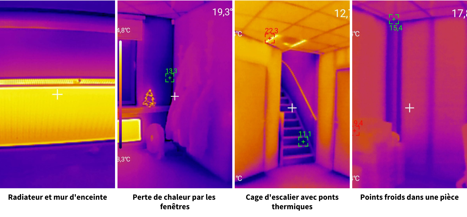 - Comparaison des conditions : Il est utile de capturer des images d'un même endroit dans des contextes différents -- par exemple, avant et après une intervention d'isolation -- afin de visualiser l'évolution des performances thermiques.