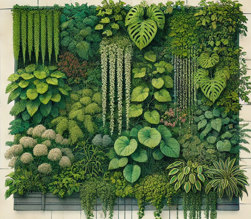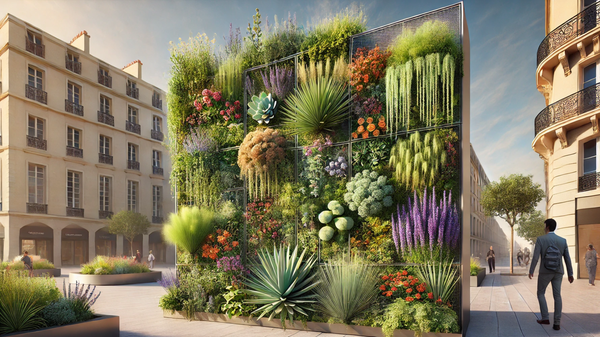 - Mur végétal : Une structure verticale recouverte de plantes, utilisée pour améliorer la qualité de l'air, réguler la température et améliorer l'esthétique urbaine.