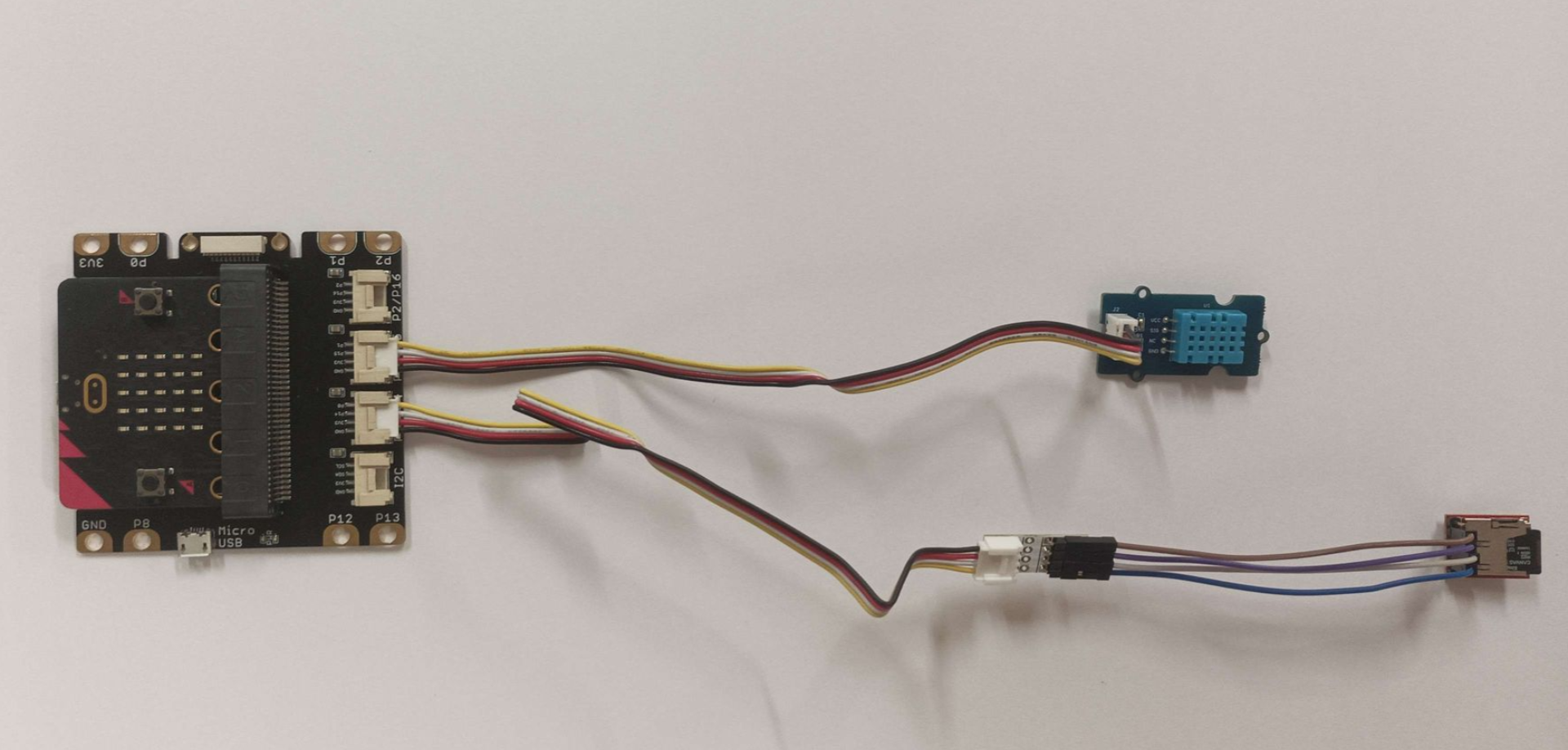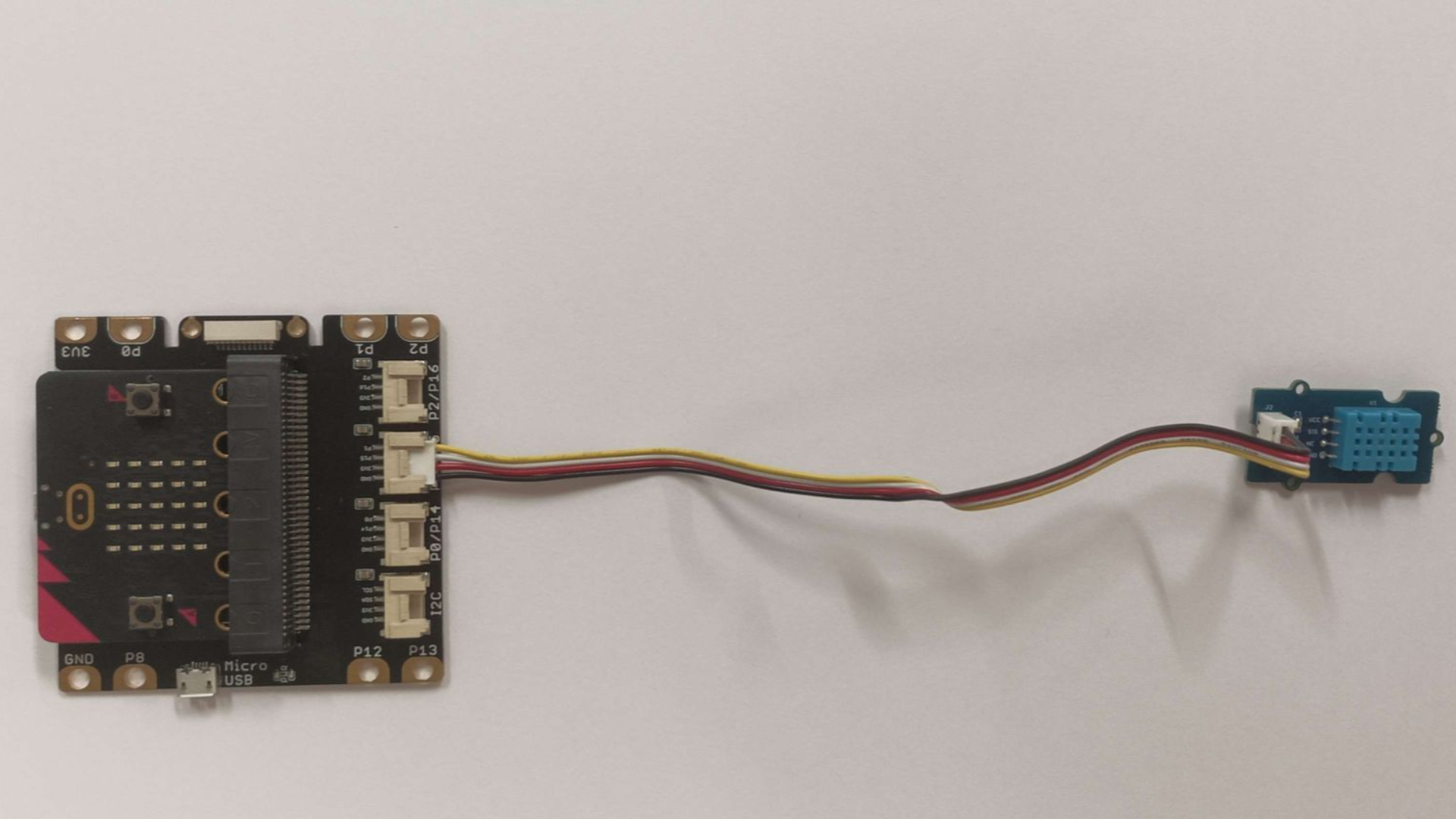 La carte Micro:bit doit être connectée au Grove Shield. Le capteur de température/humidité peut être placé sur les broches P1/P15 ou P2/P16 du blindage Grove.