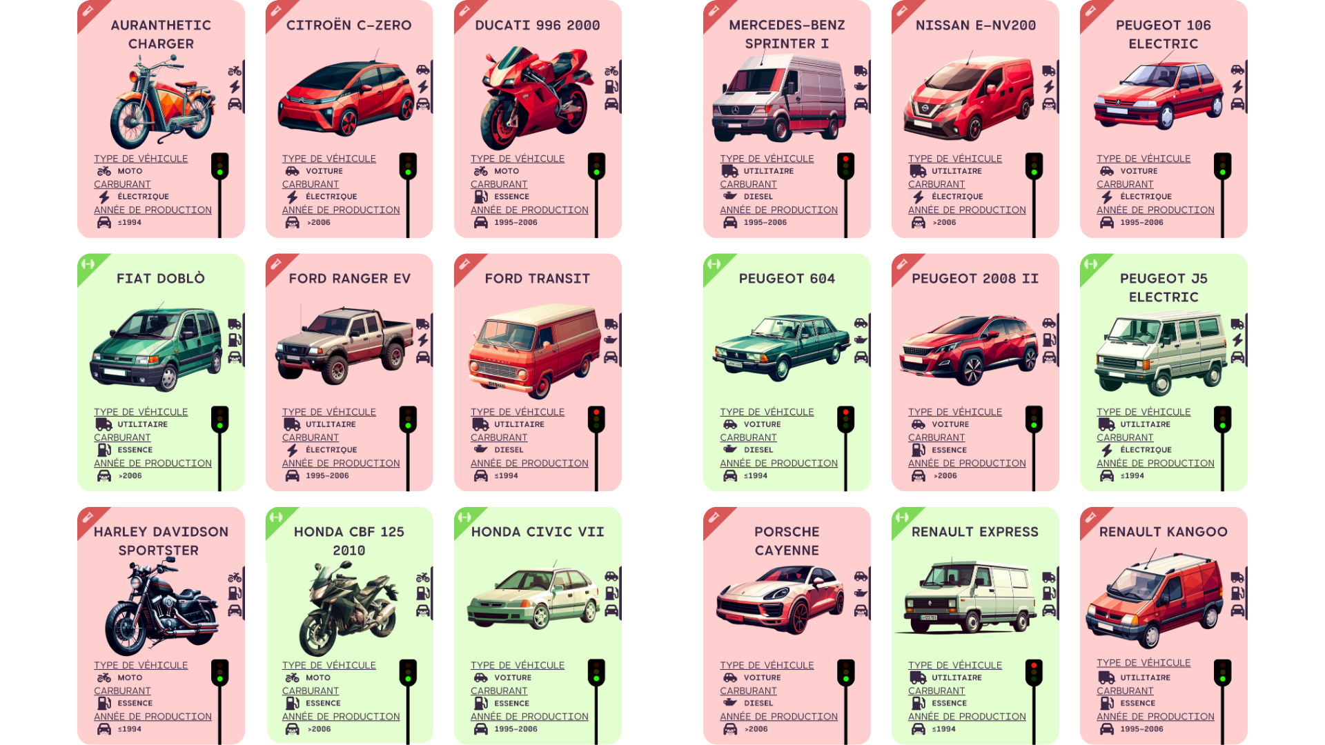 - Planche complète du jeu de cartes « Dataset de véhicules » à imprimer et découper.