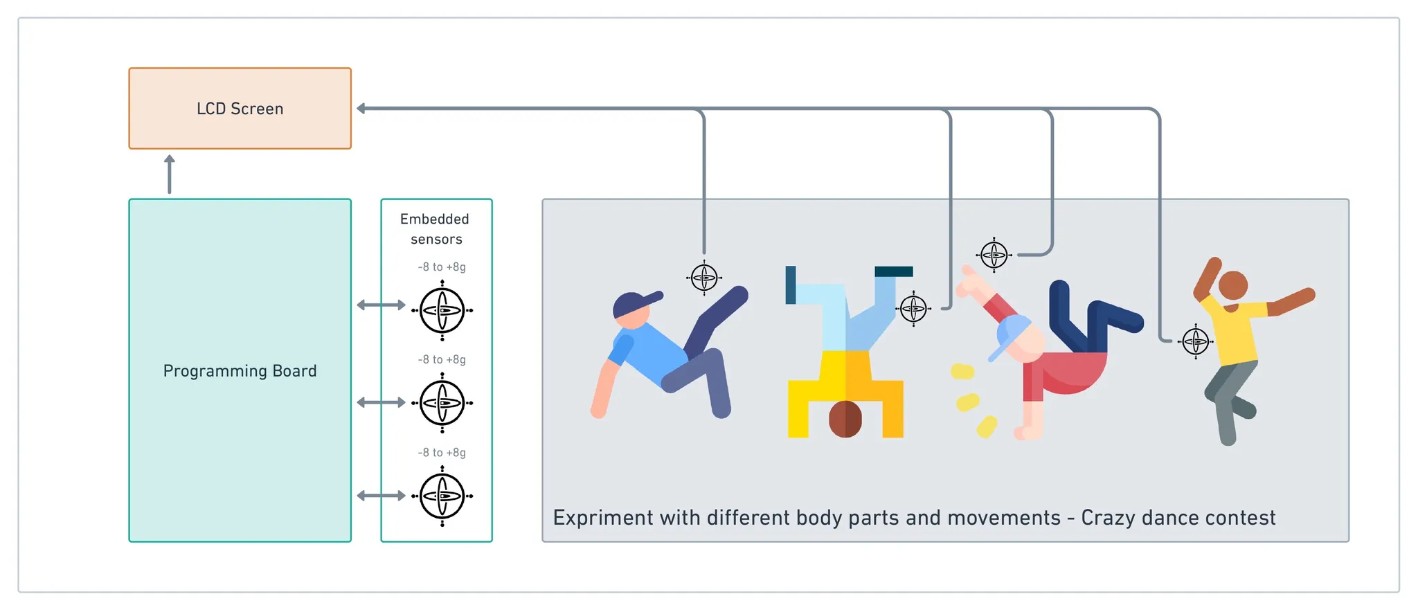 Dans ce projet, notre objectif est de mener une enquête scientifique sur la mesure de l'accélération ou de la décélération que subit notre corps ou ses différentes parties lorsque nous bougeons, que ce soit en courant, en dansant ou en exécutant toute autre activité physique. La question de recherche proposée aux élèves est donc de savoir si notre corps ou ses différentes parties sont accélérés de plus d'un g lorsque nous dansons avec enthousiasme et passion.