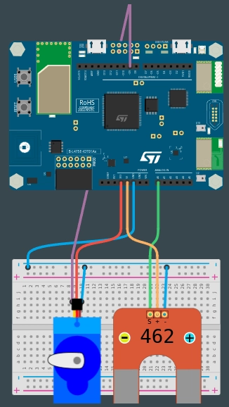 - La broche - du capteur sur la bande d'alimentation - de la breadboard