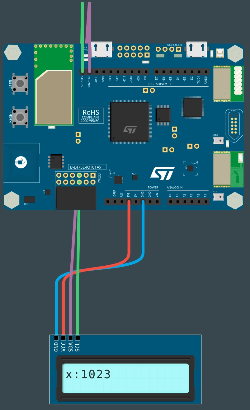 L'accéléromètre est présent sur la STM32 IoT Node Discovery, il n'y a donc pas de branchement à faire.