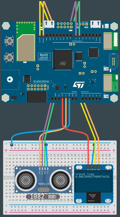 InformatiqueTechnologieSTM32 IoT NodeCapteur HC-SR04Écran OLED SSD1306MakeCode