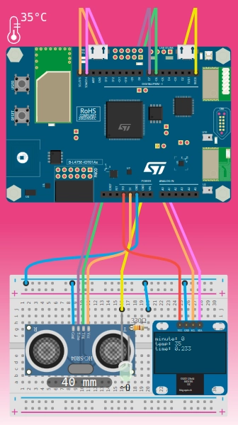 InformatiqueTechnologieSTM32 IoT NodeCapteur HC-SR04Écran OLED SSD1306MakeCode