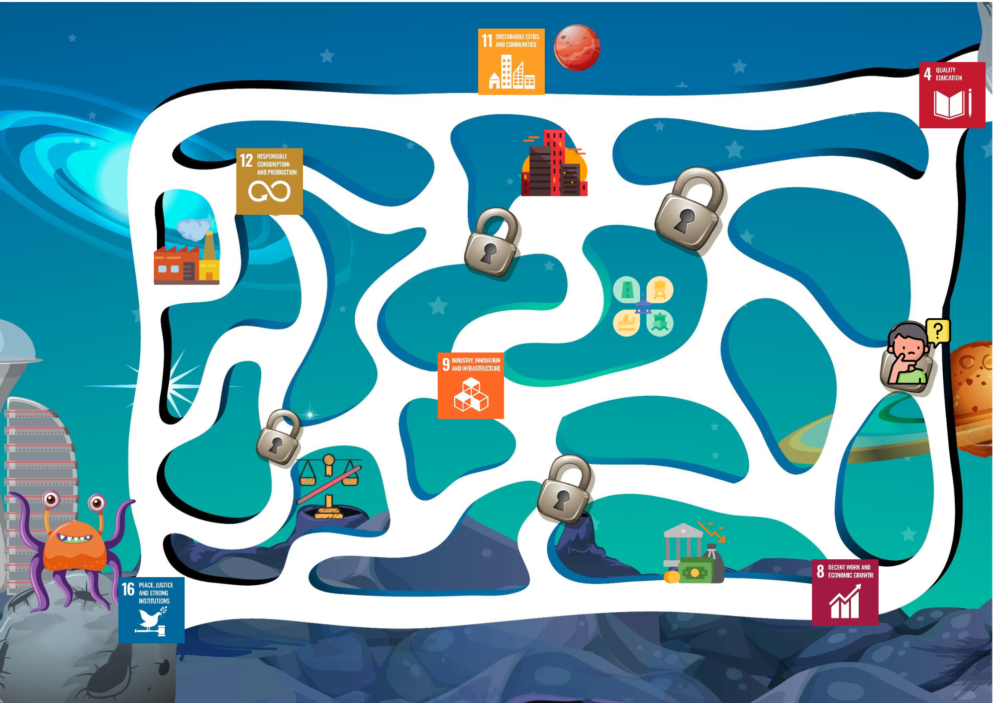 Découvrir ou mieux connaître les objectifs de développement durable, ou ODD. Toutes les cartes du jeu contiennent un certain nombre d'ODD liés au développement durable positif et un certain nombre d'ODD difficiles.