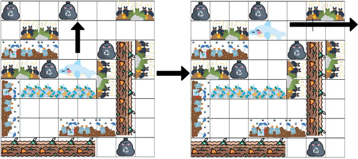 Dans Plastic continent, déplacez les tas de déchets sur un échiquier afin de libérer un dauphin pris au piège.